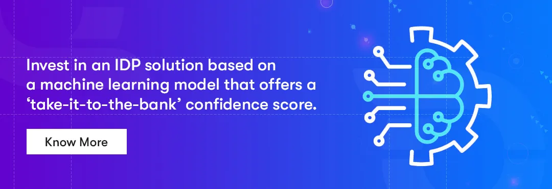 Whatever your use case may be, make it a point to invest in an IDP solution based on a machine learning (ML) model that digs deeper into the data and offers you reliability - the one that offers a ‘take-it-to-the-bank’ confidence score.