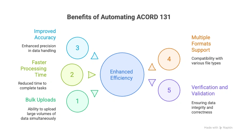 Manual form entry eats up time and leaves room for errors. With automation, processing ACORD 131 becomes much easier. Here are the key ways automation improves ACORD 131 processing: