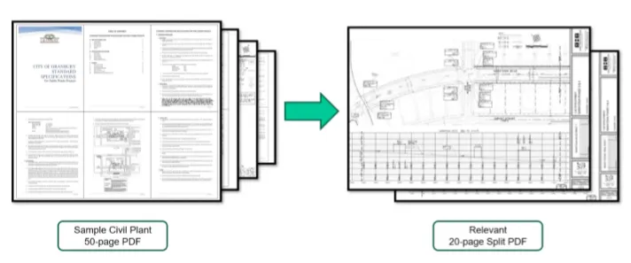 It identifies critical project details and automatically separates the relevant pages and drawings from the large “request for quantity takeoff file”. This ensures a faster, more streamlined bidding process and eliminates delays in getting the right team involved.