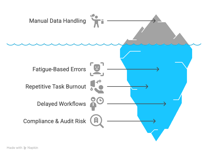 People get tired. When you're scanning through hundreds of documents a day, misreading a “6” as an “8” or skipping a decimal point is inevitable. One small typo can trigger costly delays or compliance issues. - Repetitive Task Burnout