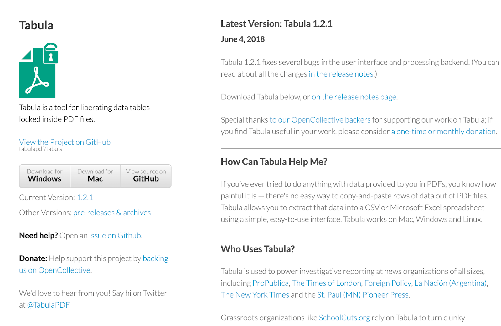 Tabula is an open-source tool for extracting tables from PDFs. While limited, it remains one of the best data extraction software options for users who need a simple, free way to extract tabular data.