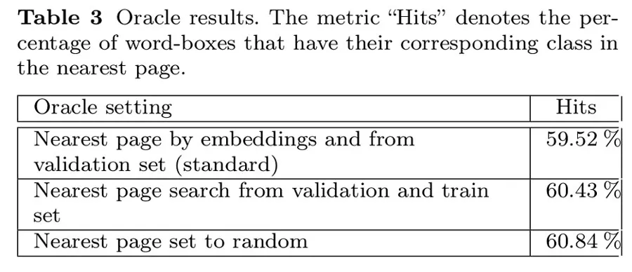 Table 3: Only roughly 60% of word-boxes have their counterpart (class-wise) in the found nearest page.