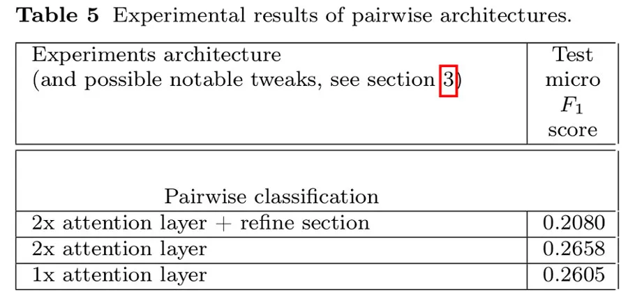 Table 5: Pairwise classification performed better than simple Copypaste, but still worse than linear architecture.