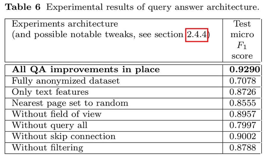 The dataset and the metric: Overall, we have a dataset with 25,071 PDF documents, totaling 35,880 pages. The documents are of various vendors, layouts, and languages, and are split into a training, validation, and test set at random (80 % / 10 % / 10 %). A validation set is used for model selection and early stopping. The metric used is computed first by computing all the F1 scores of all the classes and aggregated by micrometric principle.