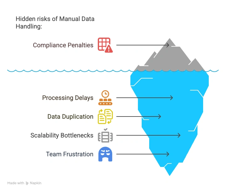Manual document handling introduces risk at every step. Errors can easily creep in, leading to compliance penalties. Slow, manual processes delay financial closes and payments, while duplicated data entry creates inconsistencies across systems. Scaling becomes difficult without adding more people to the team — which drives up costs — and morale suffers when staff are bogged down with low-value work.