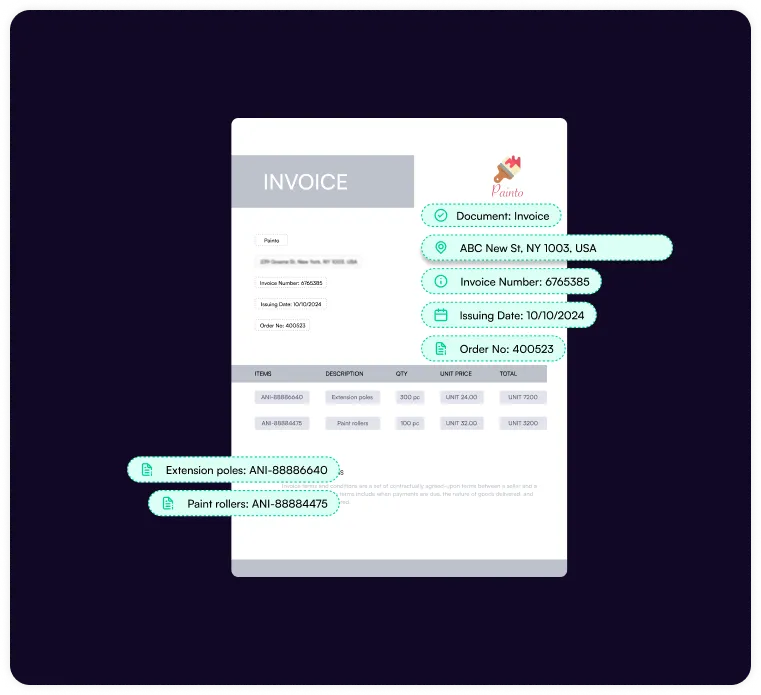 Infrrd’s AI engine identifies and extracts key invoice fields such as: