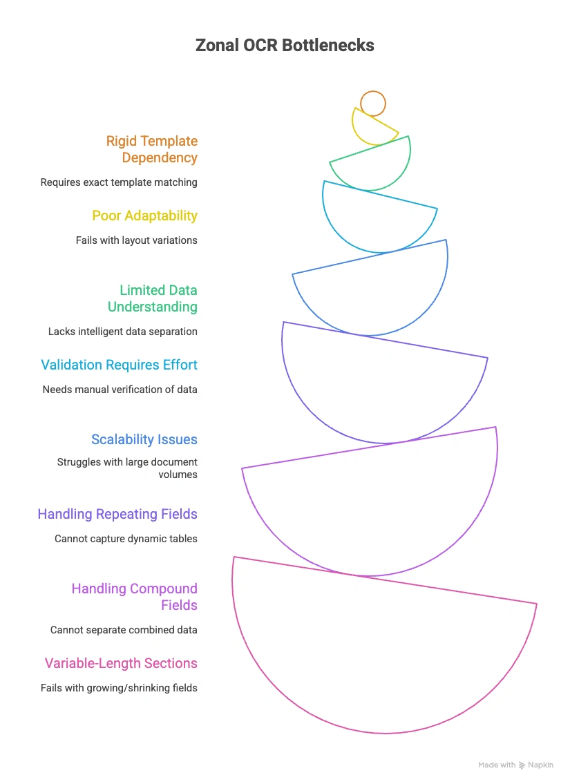 Zonal OCR served its purpose when document layouts were predictable and rarely changed. It works by extracting data from fixed zones on a page, which makes sense for standardized forms like cheques or utility bills. But here’s the problem: today’s business documents aren’t static. Layouts vary by vendor, region, and even over time. Maintaining templates becomes costly and error-prone.