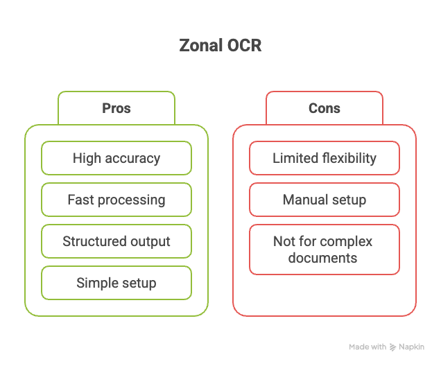 Zonal OCR works best when documents follow the same structure or template. Because the system knows exactly where to look for information, the error rate stays very low compared to full-page OCR that must interpret everything.