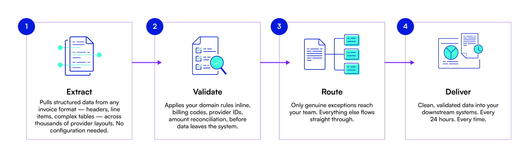 Validated, structured data reaches your downstream systems every 24 hours. Auditable. Traceable